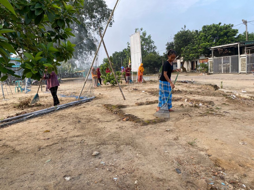 Judul: Aparatur dan Penerima Bantuan Bersatu dalam Jumat Bersih di Lingkungan Kantor Balai Kampung Cempaka Jaya